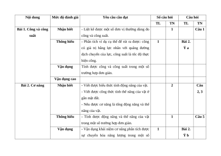 - Đổi được đơn vị của công - Giải thích được một số hiện - Vận dụng công thức tính suất, công, cơ năng.