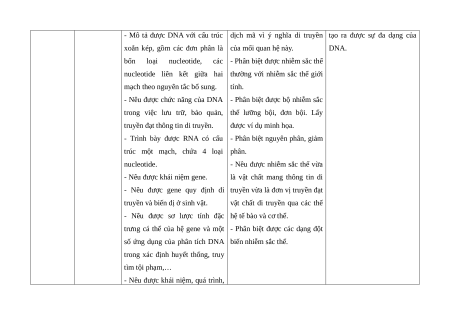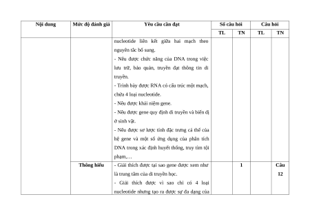 Nhận thức - Nêu được khái niệm di truyền, - Phân biệt được các loại RNA - Giải thích được tại sao