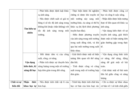 Chất và sự Nhận thức - Nêu được tính chất vật lí của - Trình bày được tính chất hóa - Chỉ ra được sự khác nhau biến đổi