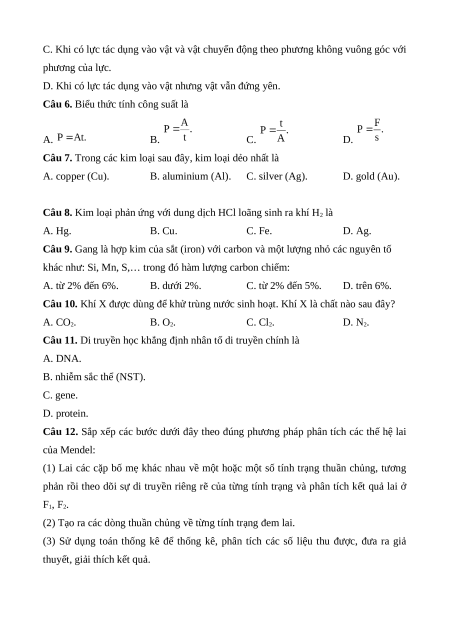 giữa kim loại và phi điểm) câu điểm) điểm) điểm) kim Chương XI. Di 1 2 1 1 truyền học Menden. 4 (1 3 ý/ 2 (0,5 (0,5 (0,5 (0,5 6 30%