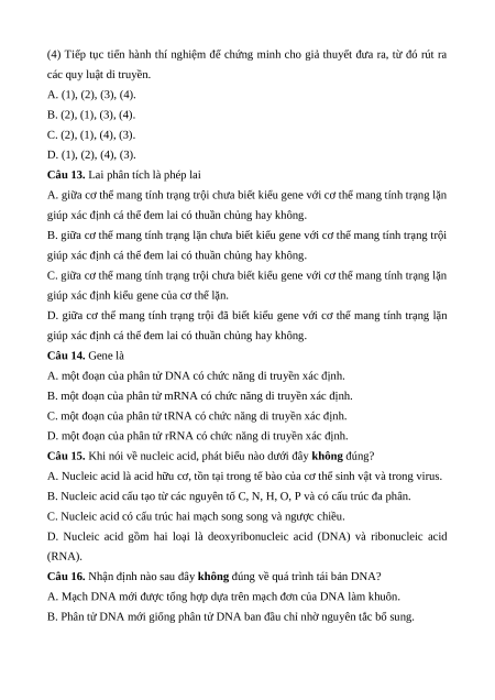 - Nêu được gene quy định di kép, gồm các đơn phân là bốn tâm của di truyền học.