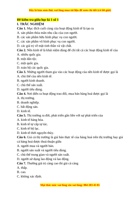 Câu 4. Nơi diễn ra hoạt động trao đổi, mua bán hàng hoá được gọi là A. thị trường. B. doanh nghiệp. C. bất động sản. D. kinh tế.