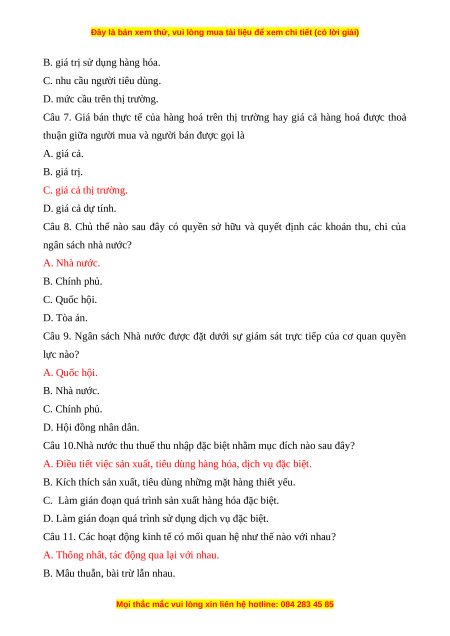Câu 7. Giá bán thực tế của hàng hoá trên thị trường hay giá cả hàng hoá được thoả