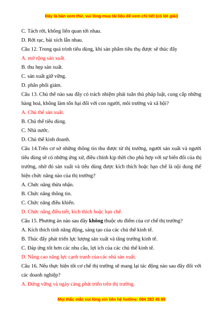 Câu 12. Trong quá trình tiêu dùng, khi sản phẩm tiêu thụ được sẽ thúc đẩy A. mở rộng sản xuất. B. thu hẹp sản xuất. C. sản xuất giữ vững. D. phân phối giảm.