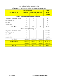 MÔN: KINH TẾ PHÁP LUẬT – LỚP: 12 – NĂM HỌC: 2024 – 2025 Mức độ đánh giá Tổng Nội dung học tập Nhận biết