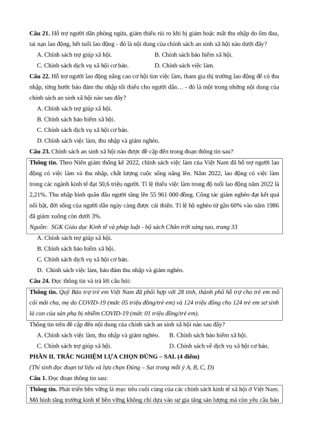 Tăng trưởng và phát triển kinh tế 2 3 3 8 Hội nhập quốc tế 2 3 3 8 Bảo hiểm 2 1 1 4 An sinh xã hội 2 1 1 4 Tổng phần 1 8 câu 8 câu 8 câu 24 câu