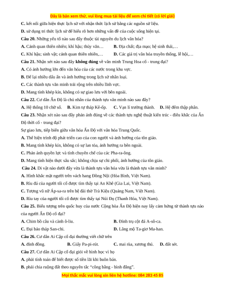 Câu 24. Di vật nào dưới đây vừa là thành tựu văn hóa vừa là thành tựu văn minh?