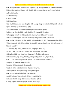 Câu 11. Nội dung nào sau đây phản ảnh không đúng vai trò của Sử học đối với các