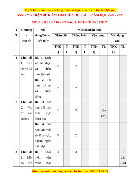 - Tailieugiaovien.com.vn giới thiệu bộ 5 đề thi giữa kì 1 môn Lịch sử 10 Kết nối tri thức mới nhất nhằm giúp Giáo viên có thêm tài liệu tham khảo ra đề thi Lịch sử lớp 10.