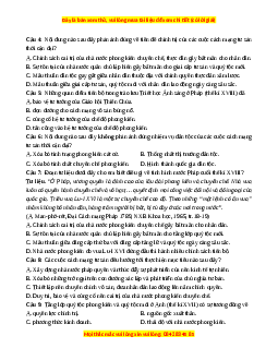 Câu 4: Nội dung nào sau đây phản ánh đúng về tiền đề chính trị của các cuộc cách mạng tư sản