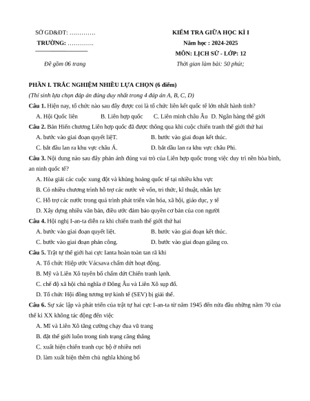 MÔN: LỊCH SỬ - LỚP: 12 Đề gồm 06 trang