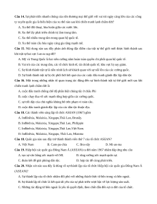 Câu 18. Các thành viên sáng lập tổ chức ASEAN (1967) gồm