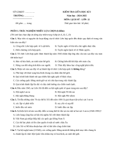 MÔN: LỊCH SỬ - LỚP: 12 Đề gồm ….. trang