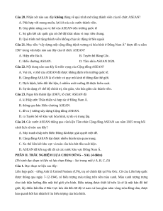 Câu 19. Hiệp hội các quốc gia Đông Nam Á (ASEAN) được thành lập năm 1967 trong bối cảnh