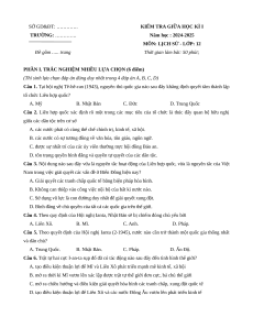 Đề thi giữa kì 1 Lịch sử 12 Chân trời sáng tạo 2024 (Đề 3)