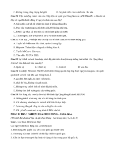 Câu 20. Việc mở rộng thành viên của Hiệp hội các quốc gia Đông Nam Á (ASEAN) diễn ra lâu dài và