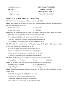 MÔN: LỊCH SỬ - LỚP: 12 Đề gồm ….. trang