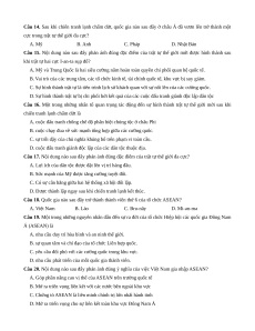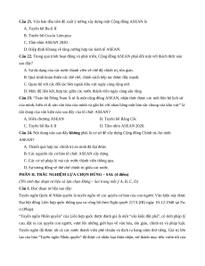 Câu 21. Văn bản đầu tiên đề xuất ý tưởng xây dựng một Cộng đồng ASEAN là A. Tuyên bố Ba-li II B. Tuyên bố Cua-la Lăm-pua C. Tầm nhìn ASEAN 2020.