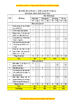 BỘ SÁCH: CHÂN TRỜI SÁNG TẠO Mức độ đánh giá STT Nội dung Nhận biết Thông hiểu Vận dụng VD cao TN TL TN TL TN TL TN TL Phân môn Lịch sử