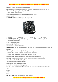 Câu 11 (0,5 điểm). Chính phủ quy định ngày 10/3 (âm lịch) là ngày giỗ Tổ Hùng Vương năm: A. 2001. B. 2012. C. 2010. D. 1998.