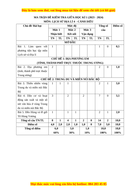 - Tailieugiaovien.com.vn giới thiệu bộ đề giữa kì 1 gồm đầy đủ ma trận và lời giải chi tiết môn Lịch sử & Địa lí lớp 4 Cánh diều mới nhất năm 2023-2024 nhằm giúp Giáo viên có thêm tài liệu tham khảo ra đề thi Lịch sử & Địa lí lớp 4.
