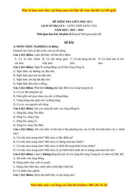 Câu 5 (0,5 điểm). Khi tìm hiểu về khí hậu ở địa phương em, em có thể tìm hiểu theo các ý chính nào?