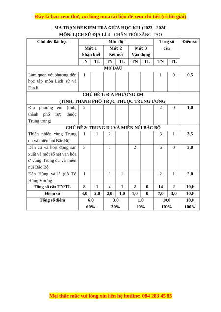 - Tailieugiaovien.com.vn giới thiệu bộ đề giữa kì 1 gồm đầy đủ ma trận và lời giải chi tiết môn Lịch sử & Địa lí lớp 4 Chân trời sáng tạo mới nhất năm 2023-2024 nhằm giúp Giáo viên có thêm tài liệu tham khảo ra đề thi Lịch sử & Địa lí lớp 4.