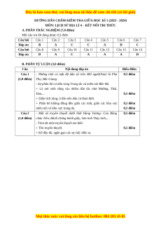 Câu 13 (0,5 điểm). Đâu không phải đền thờ trong di tích Đền Hùng? A. Đền Voi phục. B. Đền Hạ. C. Đền Thượng. D. Đền Lạc Long Quân.