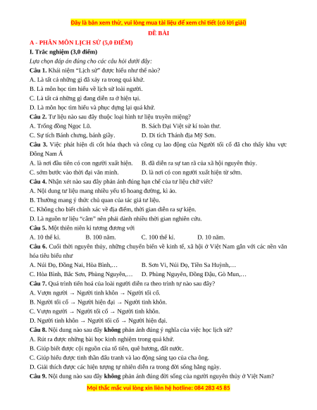 A - PHÂN MÔN LỊCH SỬ (5,0 ĐIỂM)