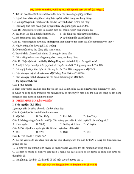 Bài 5. Chuyển biến về kinh tế, xã hội cuối thời 5 1 0 1/2 câu 1/2 câu nguyên thủy. Tổng số câu hỏi 6 0 6 0 0 1/2 câu 0 1/2 câu Tỉ lệ 15% 15% 10% 10% Phân môn Địa lí 1