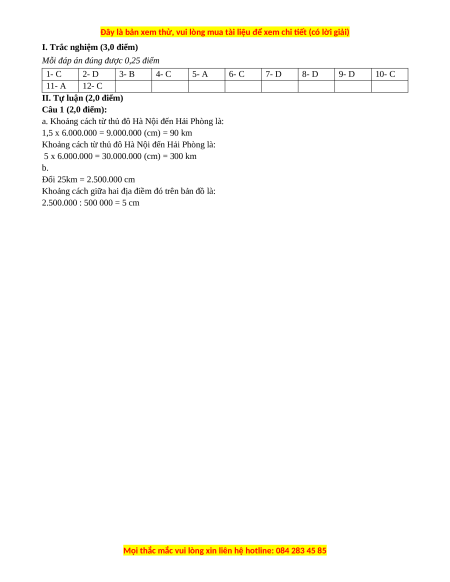 a. Trên bản đồ hành chính có tỉ lệ 1 : 6 000 000, khoảng cách giữa Thủ đô Hà Nội tới thành phố Hải