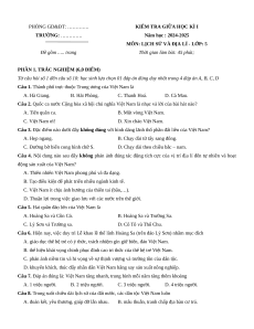 MÔN: LỊCH SỬ VÀ ĐỊA LÍ – LỚP: 5 – NĂM HỌC: 2024 – 2025