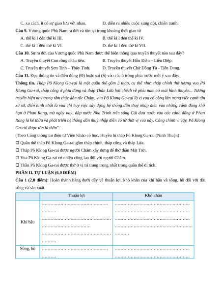 Câu 9. Vương quốc Phù Nam ra đời và tồn tại trong khoảng thời gian từ