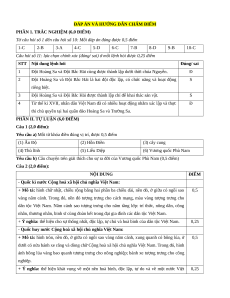 Dân cư và dân tộc ở Việt Nam 2 câu TN 3 câu TN Nhà nước Văn Lang, 5 1 câu TN 1 câu TN 2 câu TN Nhà nước Âu Lạc 1 câu TN 1 câu điền 6 Vương quốc Phù Nam 1 câu điền khuyết khuyết 7 Vương quốc Chăm-pa 2 câu TN 2 câu TN 10 TN 1 câu TN 1 câu TN 1 dạng Đ-S Tổng số câu hỏi 8 câu TN 2 lệnh hỏi 2 lệnh hỏi 1 điền.. 1 câu điền… 1 câu TL 1 TL Tỉ lệ điểm 4,0 3,0 3,0 10 Tỉ lệ % 40% 30% 30% 100%