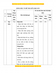 BẢNG ĐẶC TẢ ĐỀ THI GIỮA HỌC KÌ I