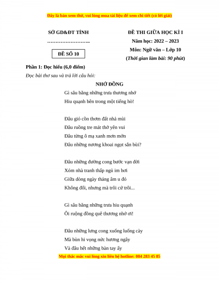 Môn: Ngữ văn – Lớp 10 ĐỀ SỐ 10