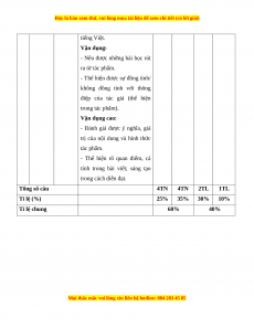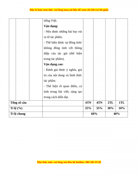tính trong bài viết; sáng tạo trong cách diễn đạt. Tổng số câu 4TN 4TN 2TL 1TL Tỉ lệ (%) 25% 35% 30% 10% Tỉ lệ chung 60% 40%