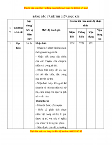 Số câu hỏi theo mức độ nhận dung/ thức T Chương đơn vị Mức độ đánh giá Vận T / chủ đề Nhận Thông Vận kiến dụng biết hiểu dụng thức cao 1 Đọc Sử thi Nhận biết: 3TN 5TN 1TL hiểu