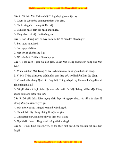 Câu 10. Có ý kiến cho rằng, truyện Nữ thần Mặt Trời và Mặt Trăng thể hiện sự
