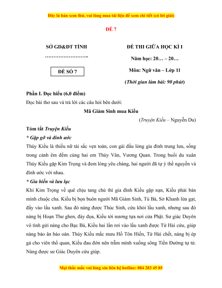 Đề thi giữa kì 1 Ngữ văn 11 Cánh diều ( đề 7)