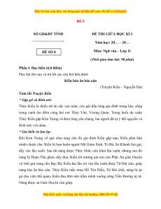 Câu 10 (1,0 điểm) Vì sao Thúy Kiều tha bổng cho Hoạn Thư? Việc làm ấy của