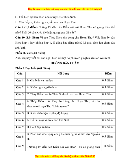 Câu 9 (1,0 điểm) Những lời đầu tiên Kiều nói với Hoạn Thư có giọng điệu thế