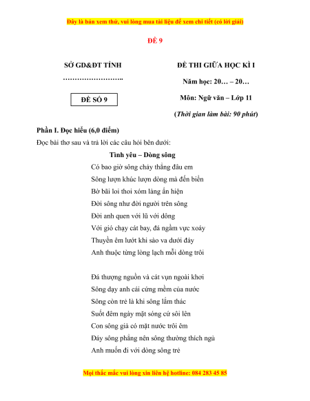 Môn: Ngữ văn – Lớp 11 ĐỀ SỐ 9