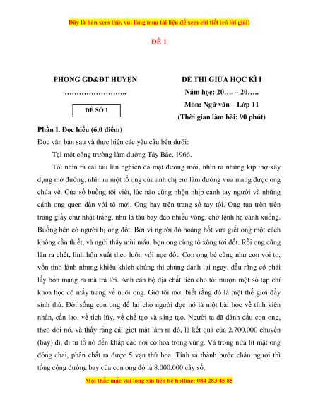 Môn: Ngữ văn – Lớp 11 ĐỀ SỐ 1