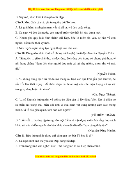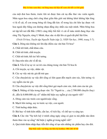 Câu 1. Dòng nào không nói lên đặc điểm của văn bản Tờ hoa?