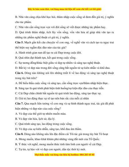 Câu 6. Dòng nào không nói lên những triết lí về lao động và sáng tạo nghệ thuật trong tùy bút trên?