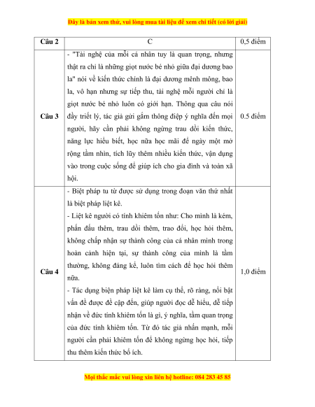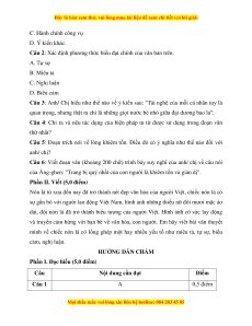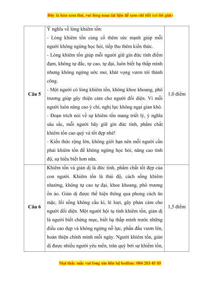 - Một người có lòng khiêm tốn, không khoe khoang, phô Câu 5 1,0 điểm