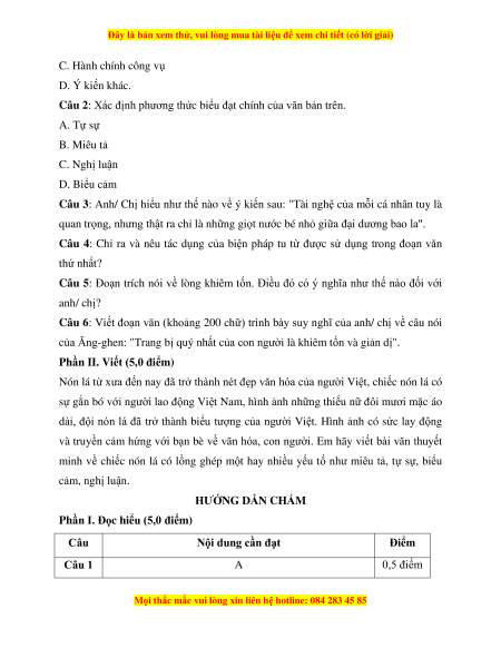 Phần I. Đọc hiểu (5,0 điểm) Câu