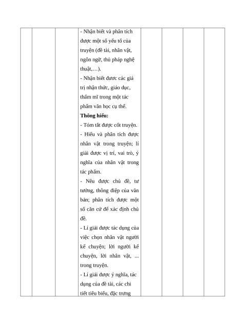 Số câu hỏi theo mức độ nhận thức dung/ T Vận Kĩ năng đơn vị Mức độ đánh giá Nhận Thông Vận T dụng kiến biết hiểu dụng cao thức 1 Đọc Truyện Nhận biết: hiểu ngắn - Phân tích và đánh giá
