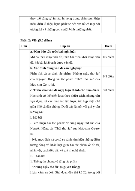 Câu 4 (1,0 điểm): Những chi tiết ở cuối văn bản: “Năm ấy tôi mười tuổi.